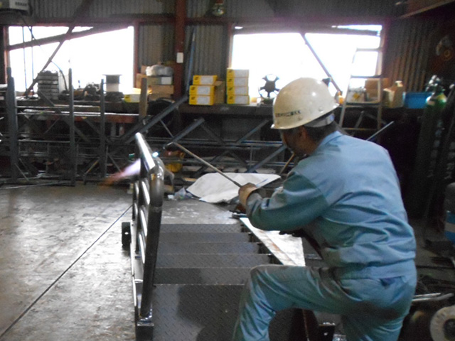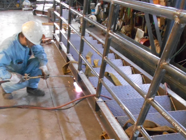 階段などの補助設備の部品などのあらゆる製品を加工しています。