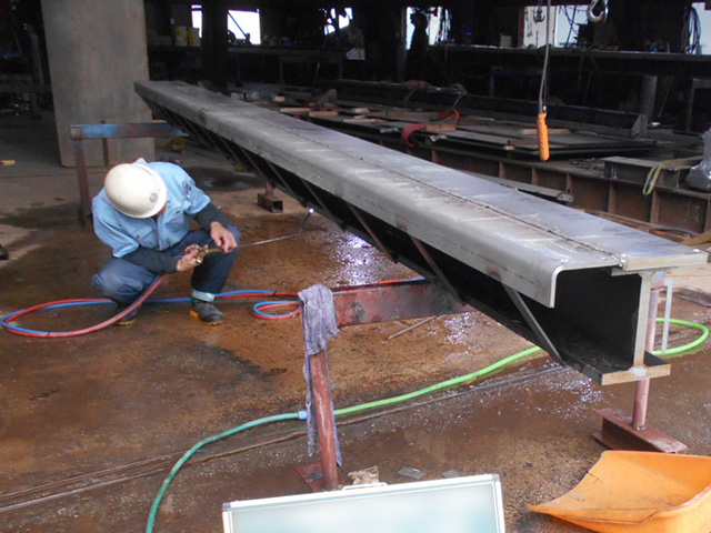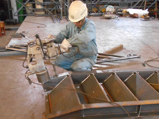 溶接加工は、組立てられた構造物を溶接して完全に接合します。